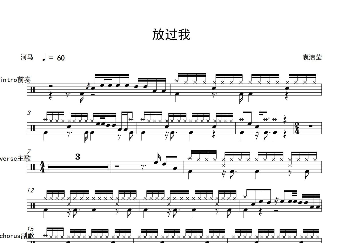 袁洁莹《放过我》鼓谱 - 架子鼓谱