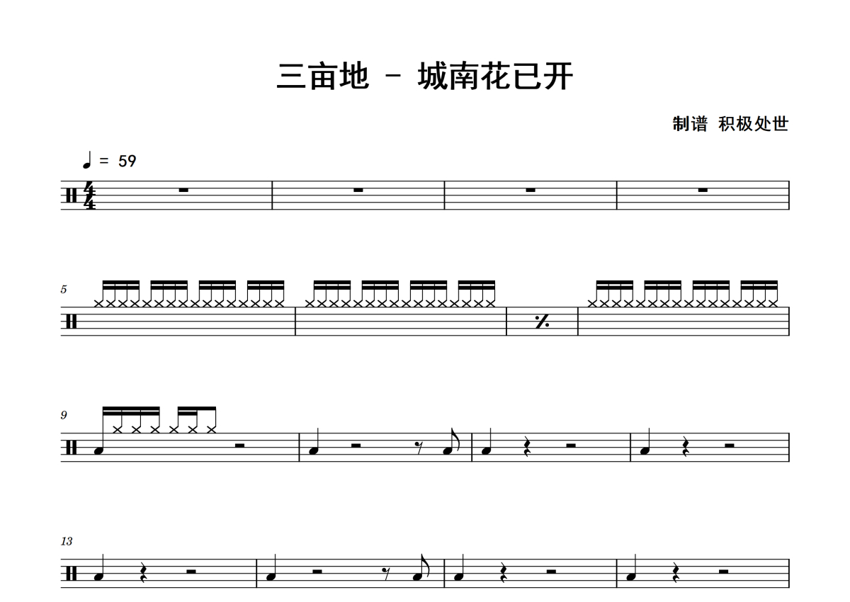 三亩地《城南花已开》鼓谱 - 架子鼓谱