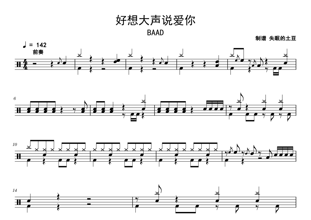 BAAD《好想大声说爱你》鼓谱 - 架子鼓谱