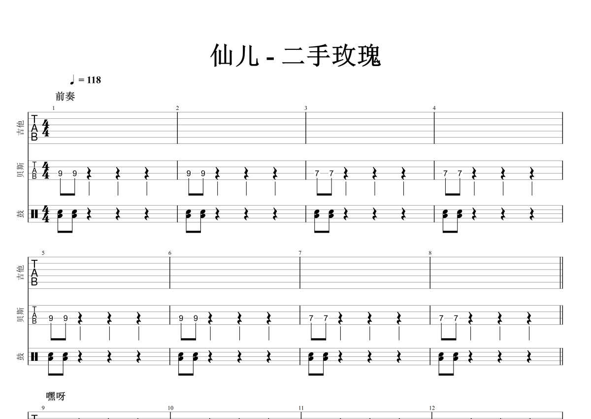 《仙儿》是二手玫瑰演唱的一首歌曲,石头音乐原版记谱,拍号为4/4拍,歌曲速度为每分钟118拍,这份乐队总谱共有十二张高清图谱,图谱由 @石头音乐 编配上传原版乐队总谱。