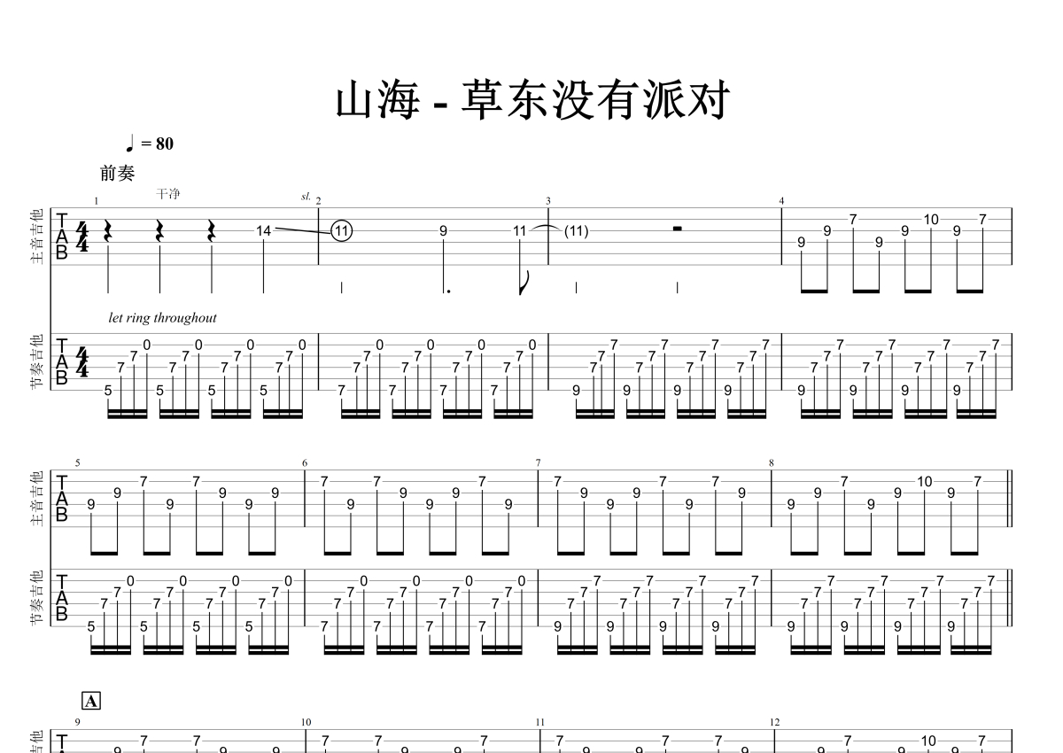 《山海》是草东没有派对演唱的一首歌曲,石头音乐原版记谱,拍号为4/4拍,歌曲速度为每分钟80拍,歌曲原调为D调,但由于原调指法比较难,为了方便弹奏,本吉他谱采用的是D调指法编配,演奏时不需要使用变调夹即为原调,这份吉他谱共有五张高清图谱,图谱由 @石头音乐 编配上传,图谱使用六线谱编配,包含吉他和弦指法、简谱以及歌词部分,曲谱配备了相关的音频提供试听,使用这份山海吉他谱,可以让你更加方便地掌握这首歌曲的弹唱技巧,快来尝试吧。