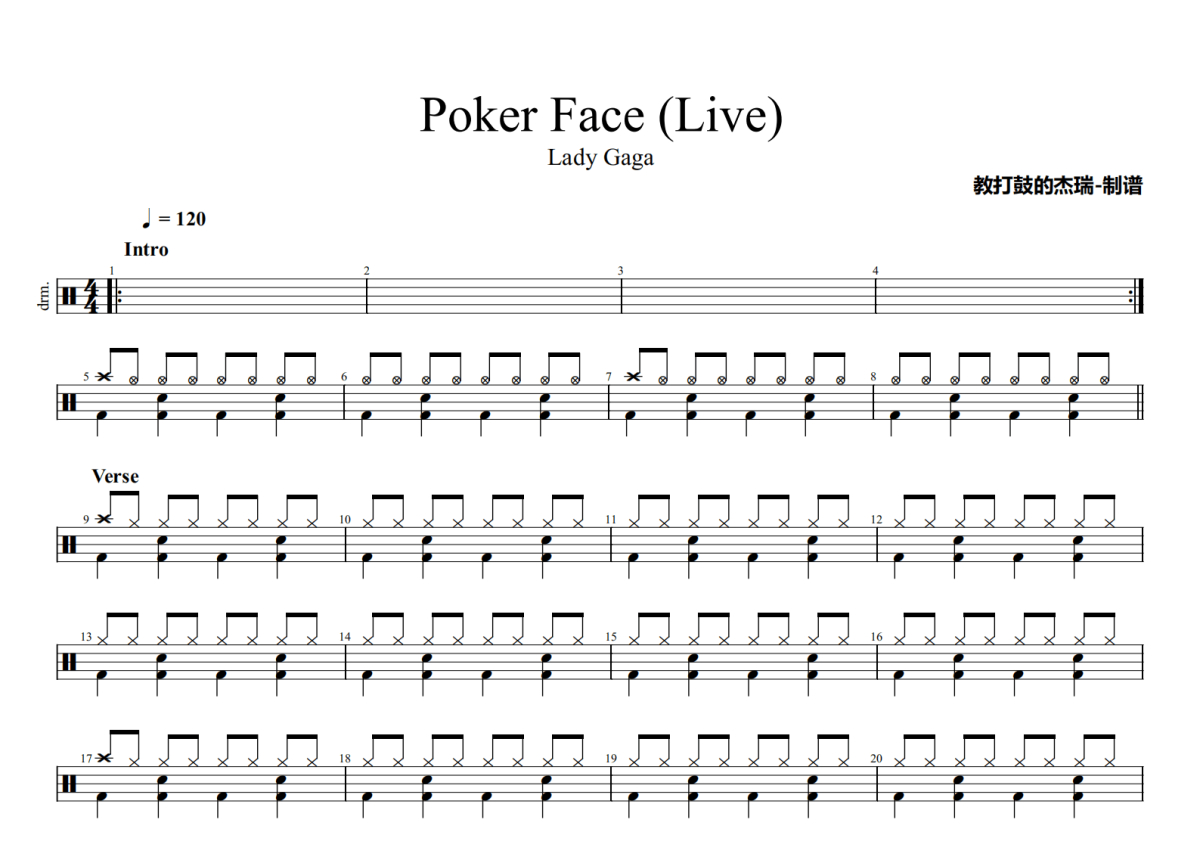 Lady Gaga《Poker Face》鼓谱 - 架子鼓谱 - (Live)