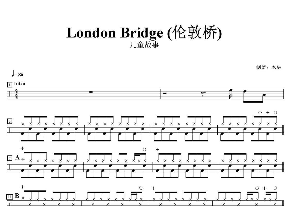 儿童故事《London Bridge》鼓谱 - 架子鼓谱