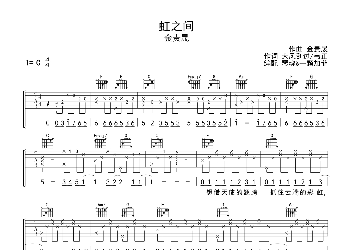 金贵晟《虹之间》吉他谱 - C调弹唱六线谱