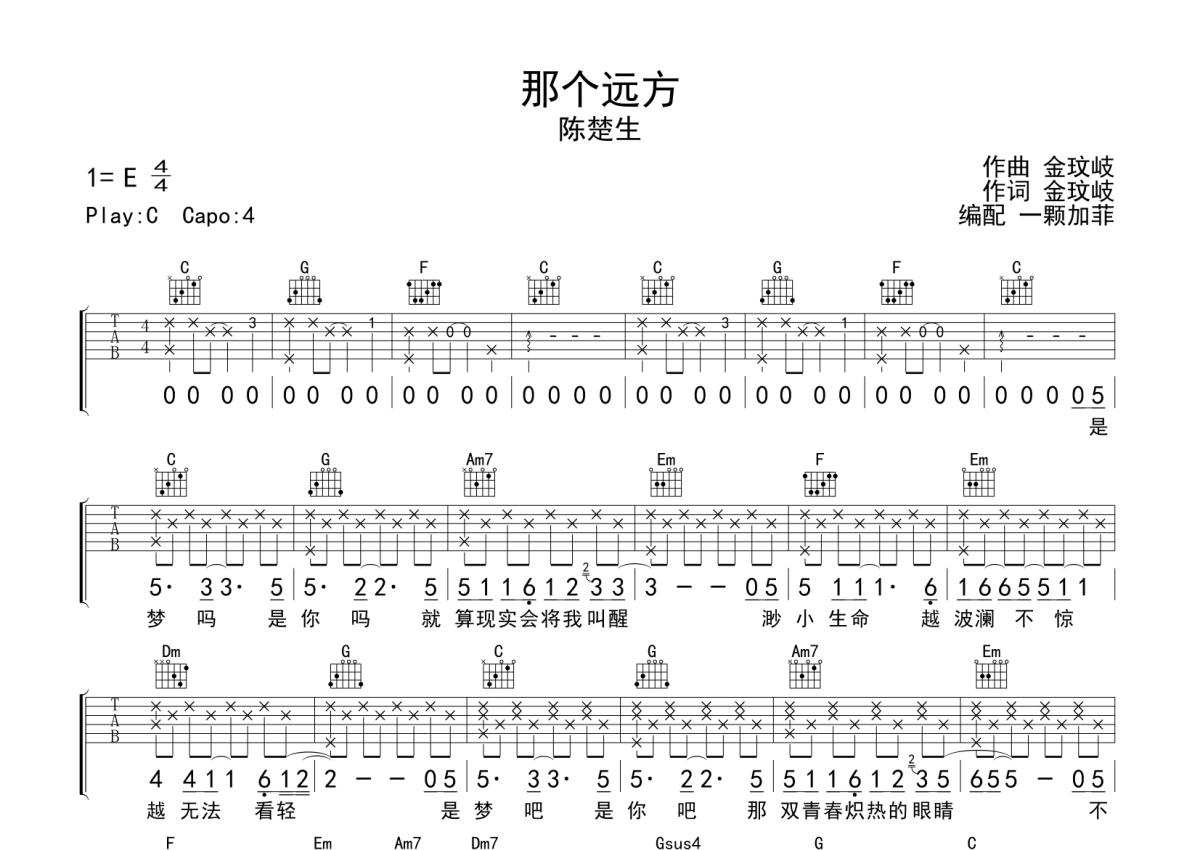 陈楚生《那个远方》吉他谱 - C调弹唱六线谱