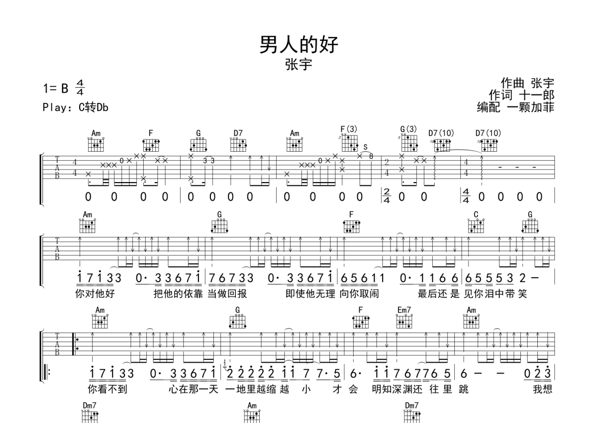 张宇《男人的话》吉他谱 - C调弹唱六线谱
