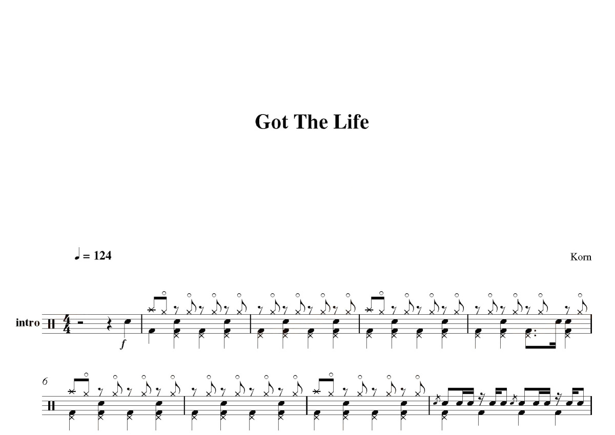 《Korn - Got the life》是Korn演唱的一首歌曲,这份鼓谱共有三张高清图谱,图谱由 @打鼓谱 编配上传,图谱使用五线谱编配,使用这份Korn - Got the life架子鼓谱,你将能够轻松地敲打出这首Korn的Korn - Got the life,快来尝试吧。“获得生命”是美国乐队Korn为他们的第三张录音室专辑“ Follow the Leader ”创作和录制的歌曲,该专辑于1998年11月23日作为专辑的第二张单曲发行。它于1998年4月在NRG Recording Studios录制。乐队决定在每位成员发现这首歌有“特殊之处”后,将其作为促销单曲发行。该单曲取得了“非凡的成功”,其音乐视频的需求比MTV的TRL上的任何其他视频都多,这使其成为第一个正式“退役”的音乐视频。