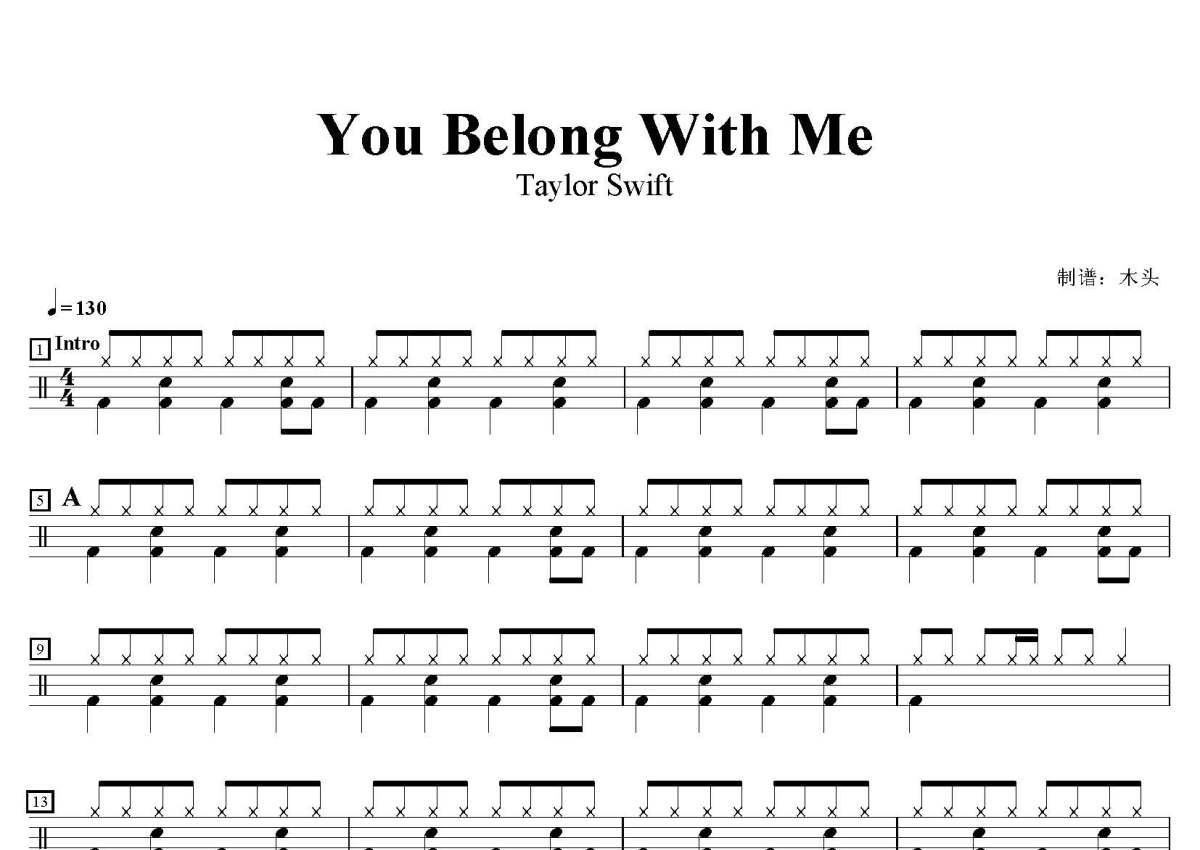 Taylor Swift《You Belong With Me》鼓谱 - 架子鼓谱