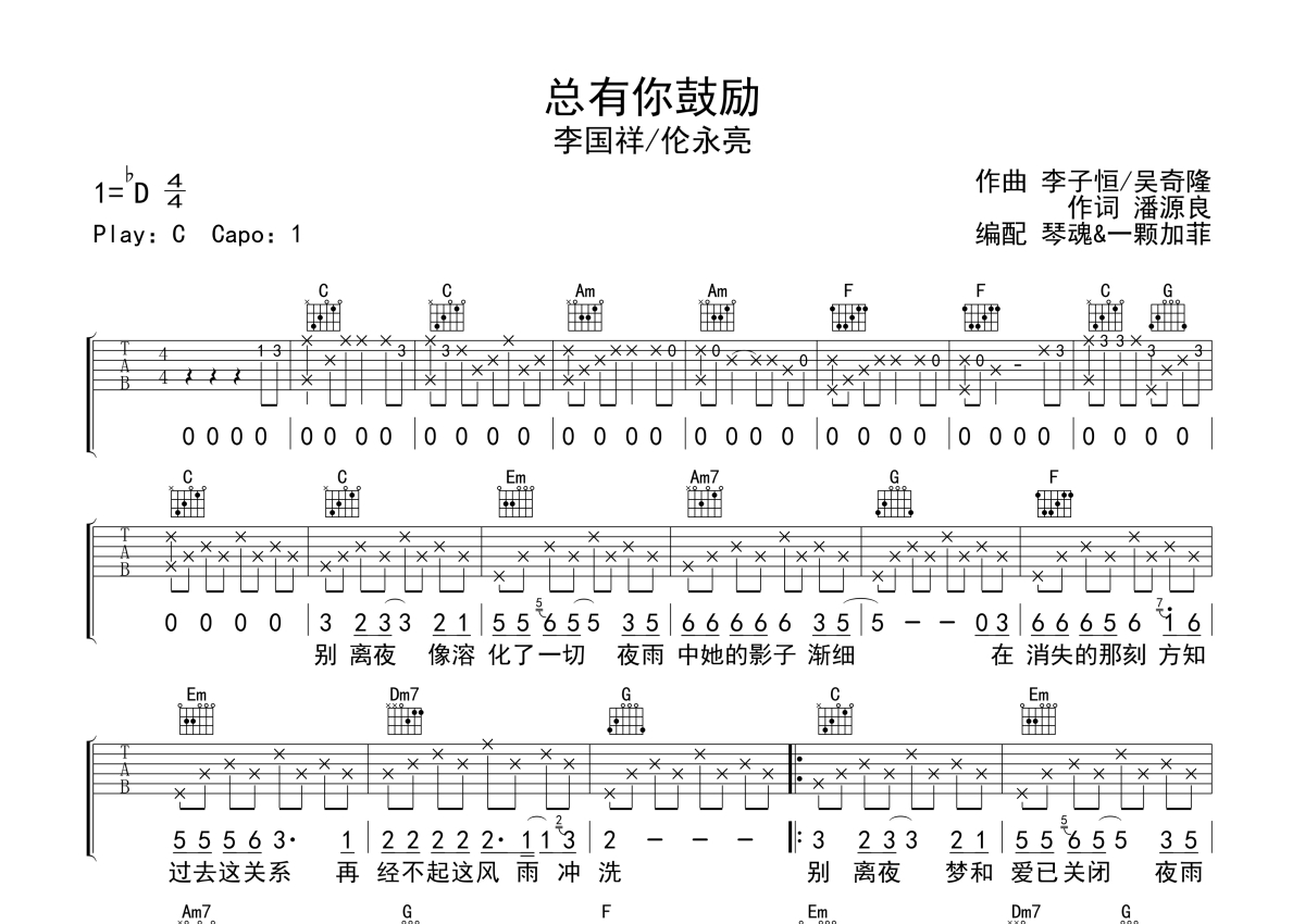 李国祥/伦永亮《总有你鼓励》吉他谱 - C调弹唱六线谱