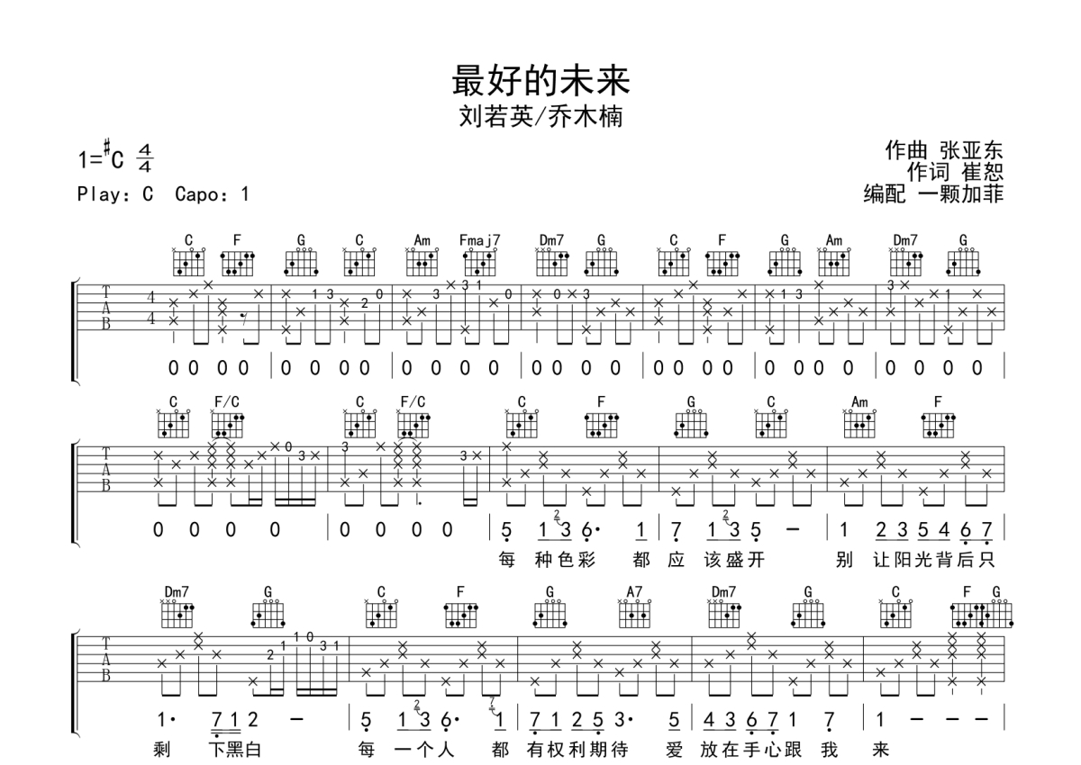 刘若英/乔木楠《最好的未来》吉他谱 - C调弹唱六线谱
