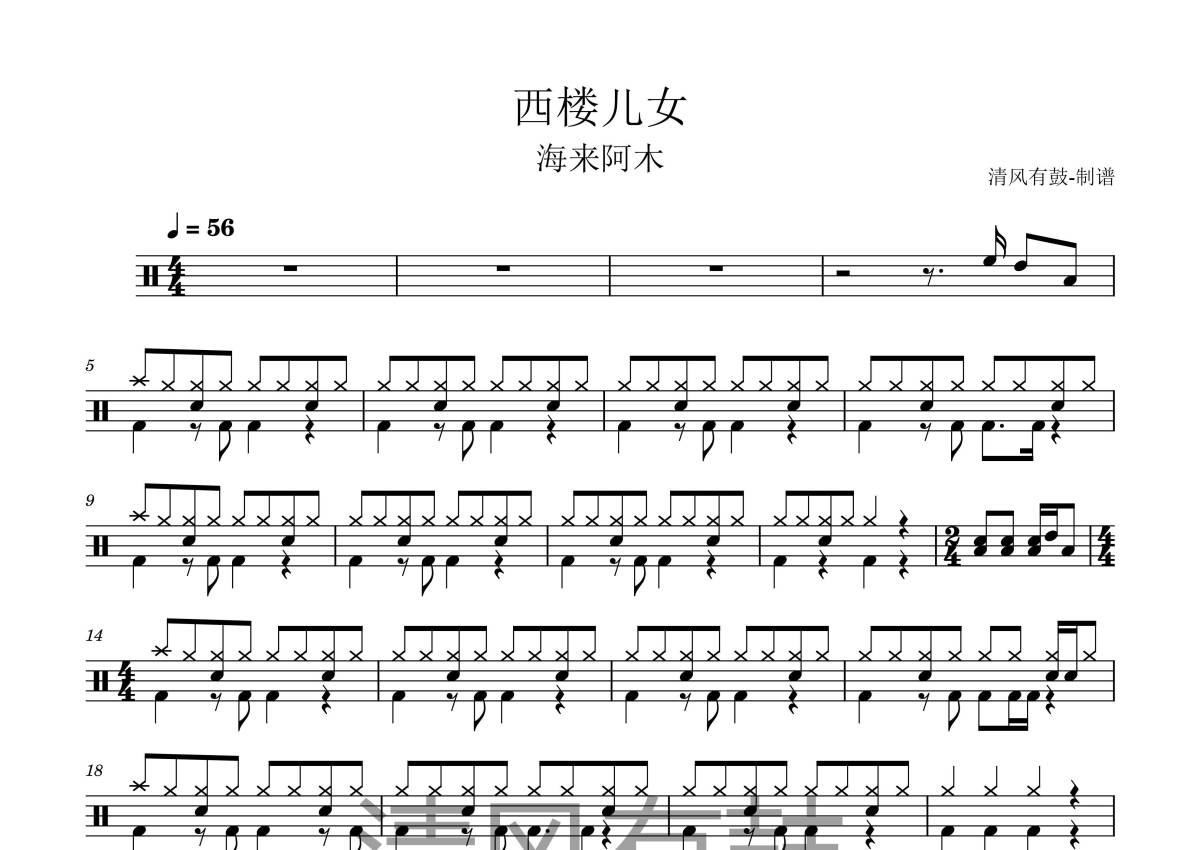 海来阿木《西楼儿女》鼓谱 - 架子鼓谱