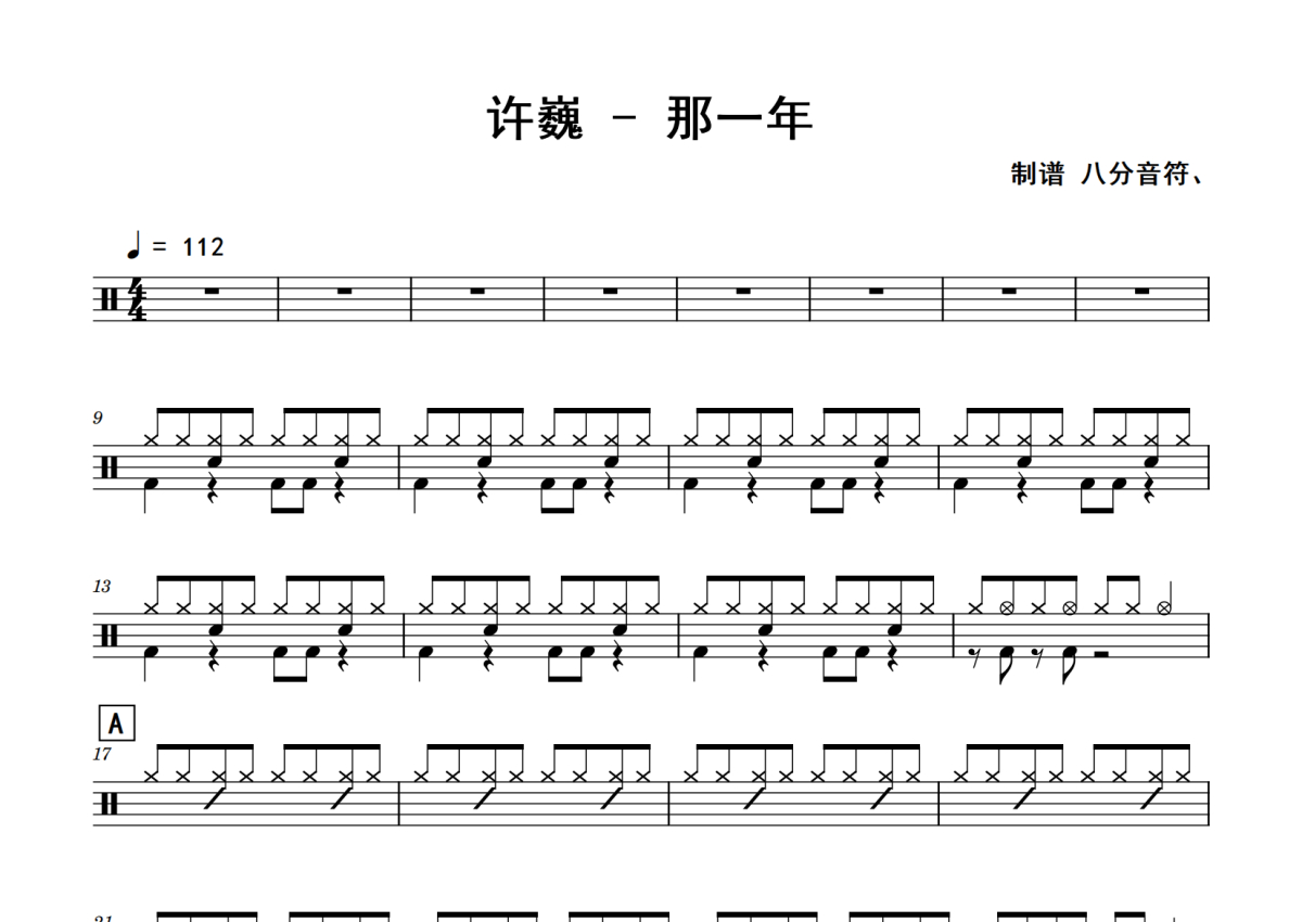 许巍《那一年》鼓谱 - 架子鼓谱