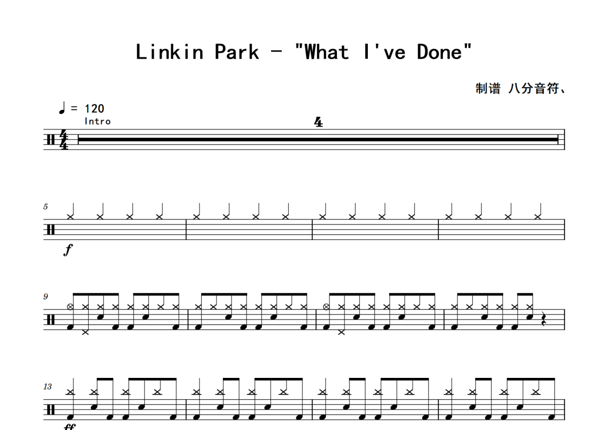 Linkin Park 林肯公园《What I've Done》鼓谱 - 架子鼓谱