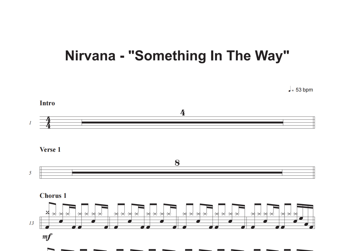 Nirvana《Something In The Way》鼓谱 - 架子鼓谱