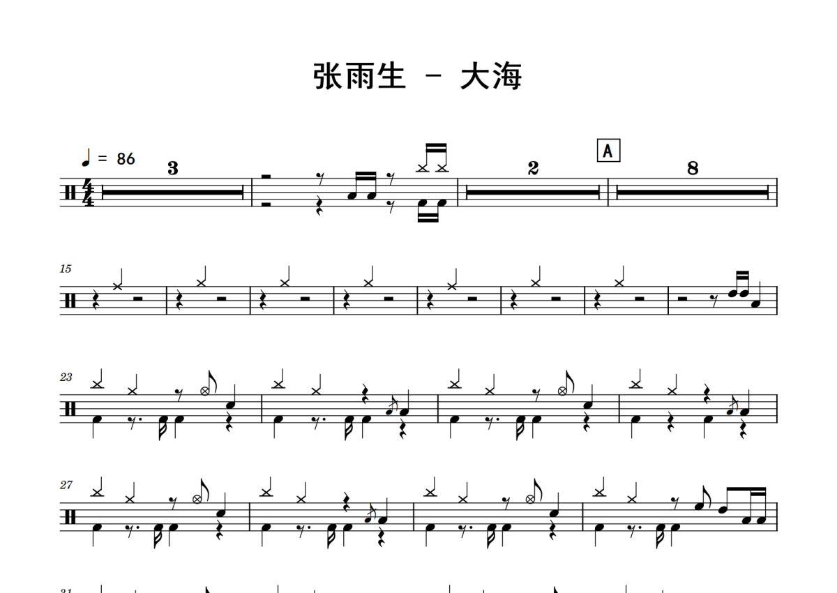 张雨生《大海》鼓谱 - 架子鼓谱
