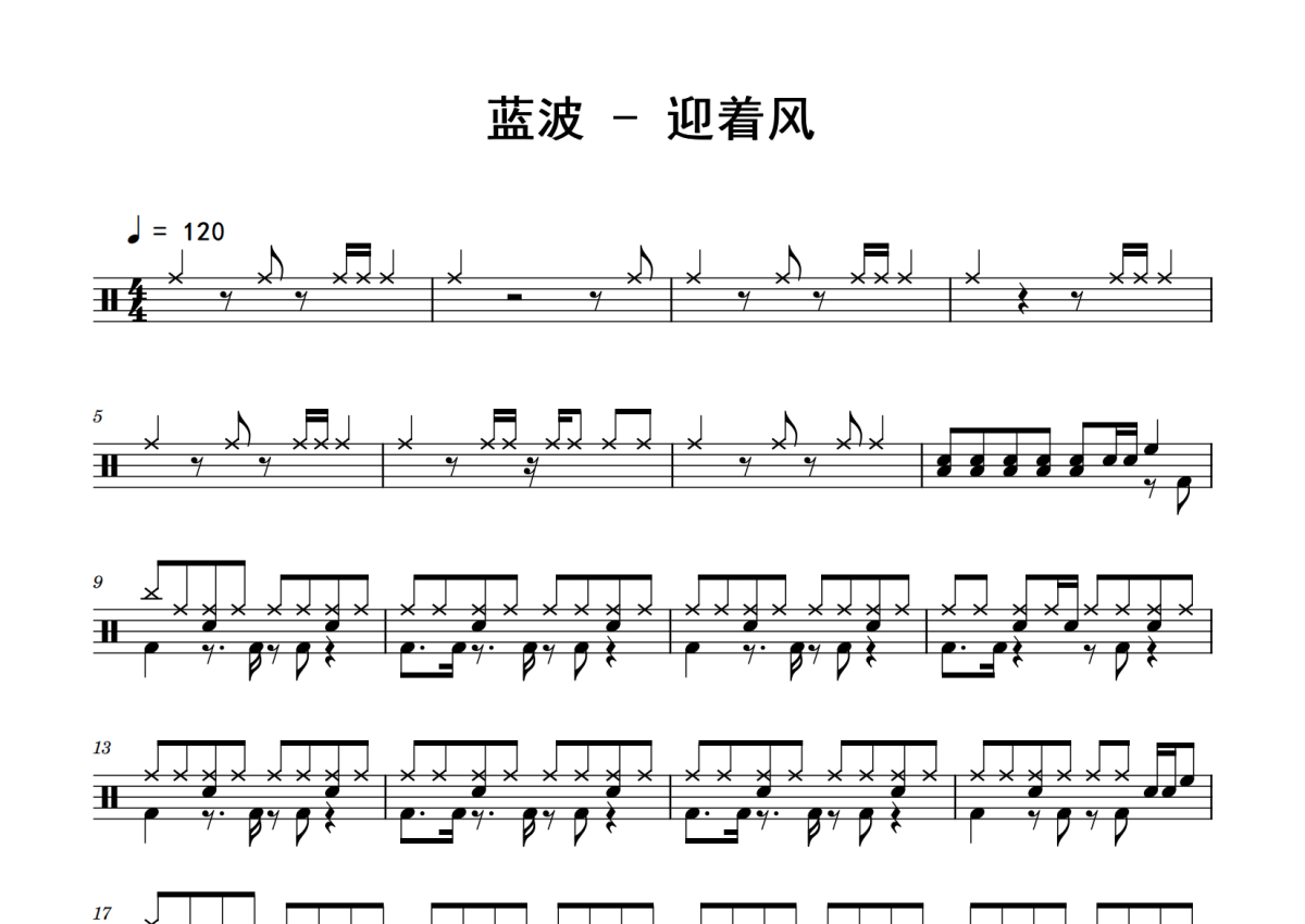 蓝波《迎着风》鼓谱 - 架子鼓谱
