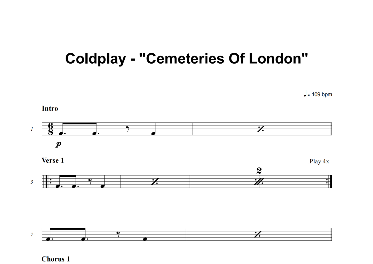 Coldplay《Cemeteries Of London》鼓谱 - 架子鼓谱