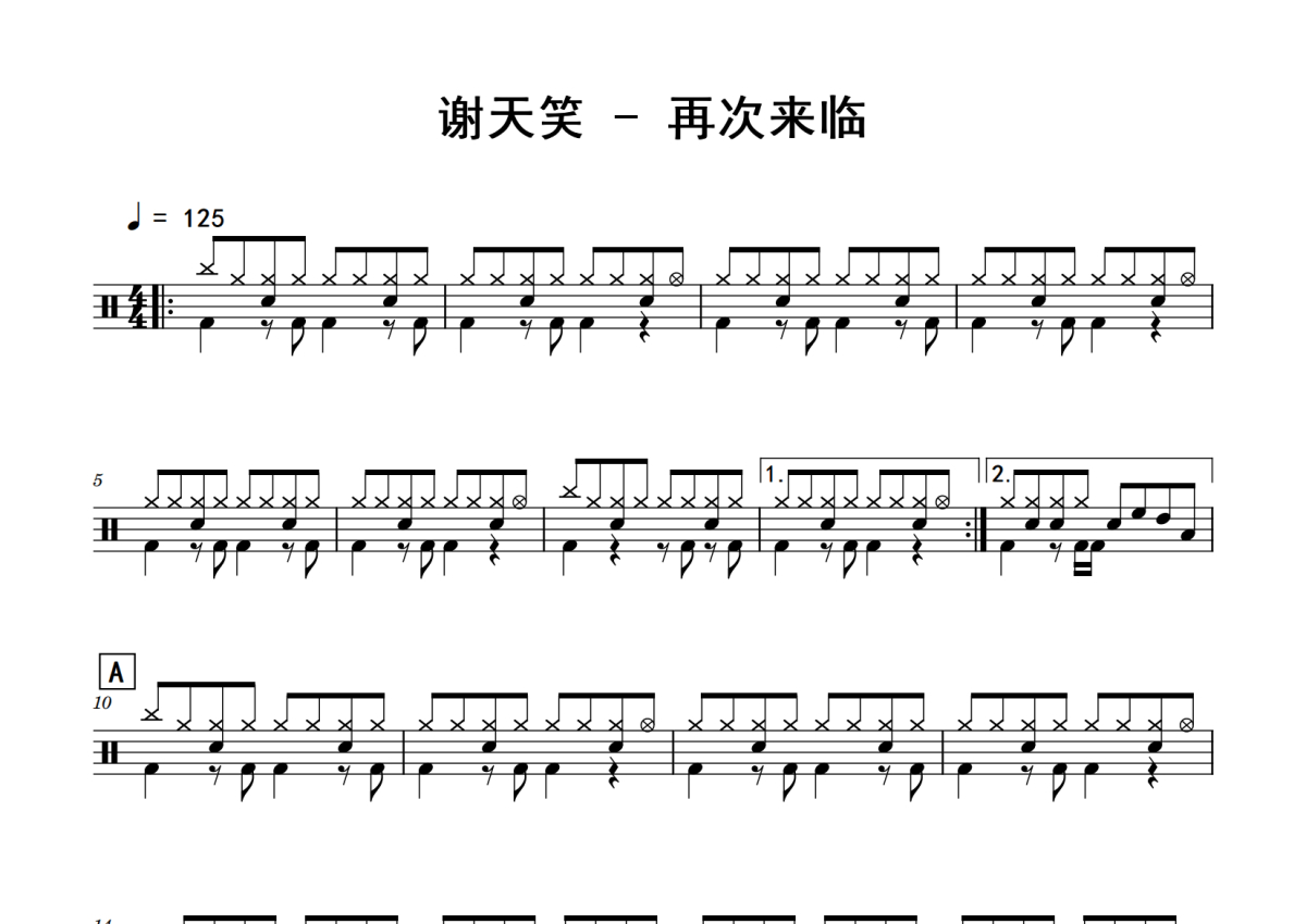 谢天笑《再次来临》鼓谱 - 架子鼓谱