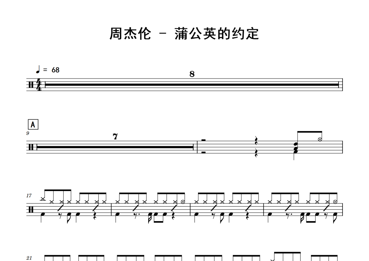 周杰伦《蒲公英的约定》鼓谱 - 架子鼓谱