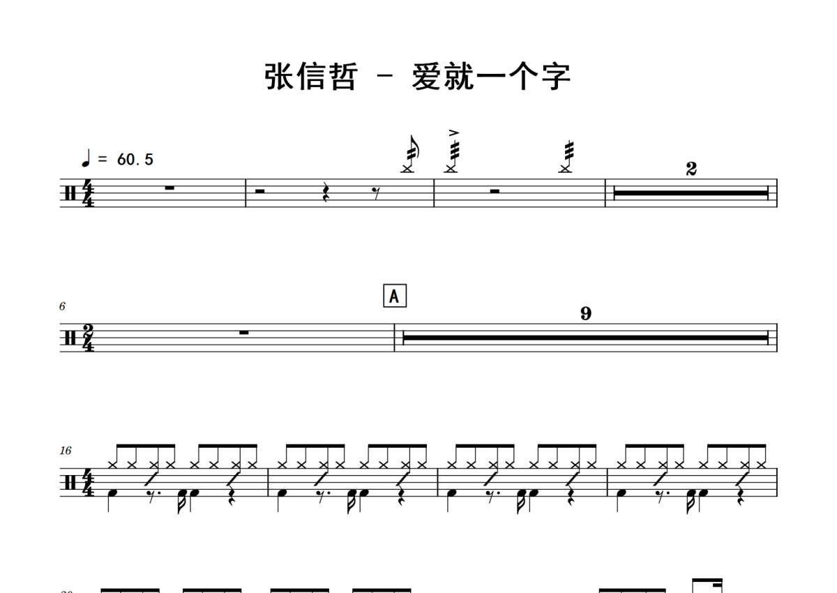 张信哲《爱就一个字》鼓谱 - 架子鼓谱