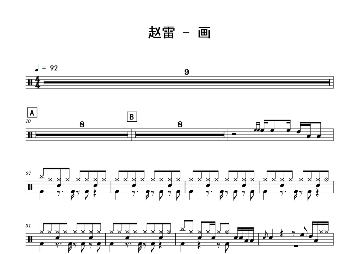 赵雷《画》鼓谱 - 架子鼓谱