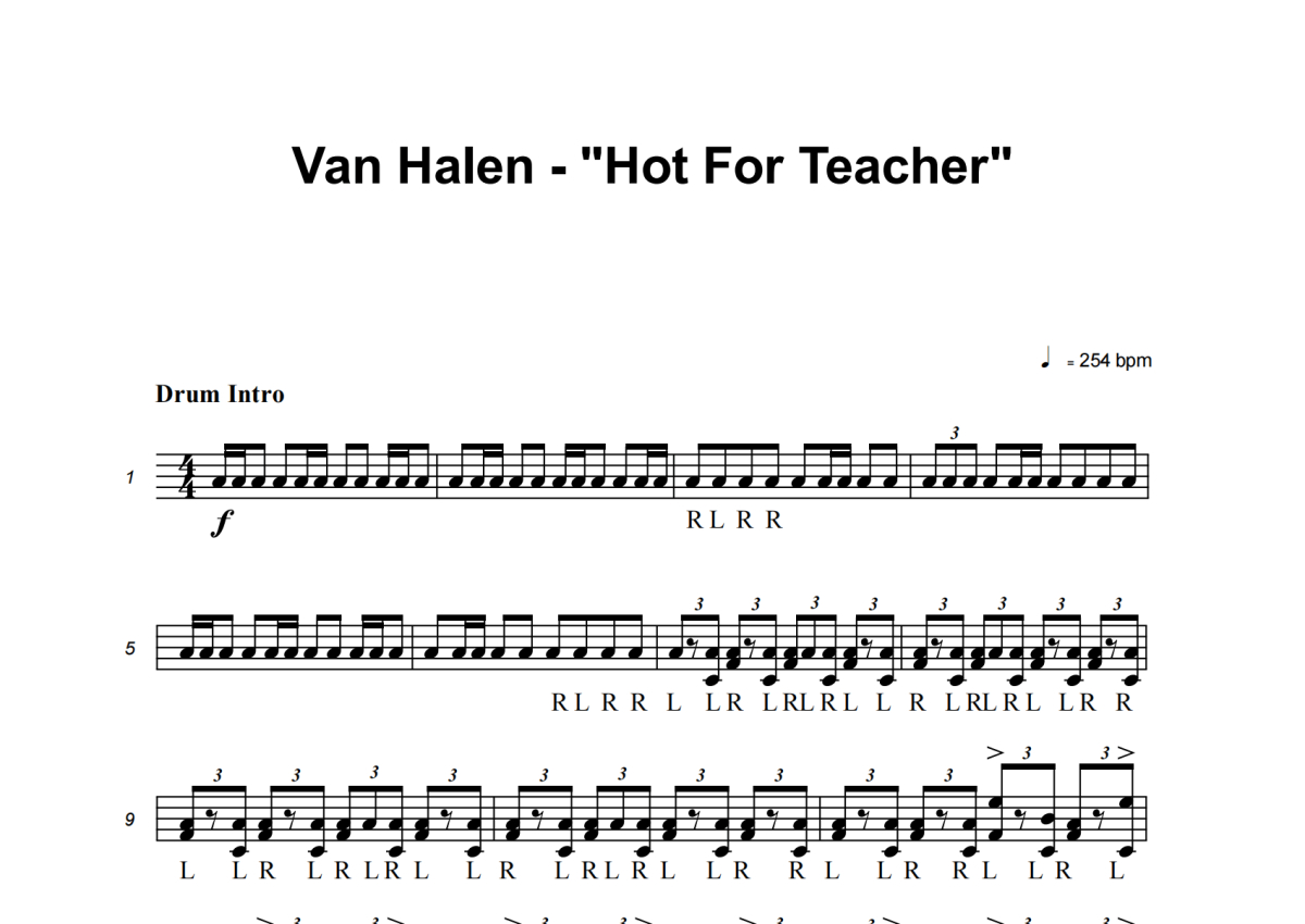 Van Halen《hot for teacher》鼓谱 - 架子鼓谱