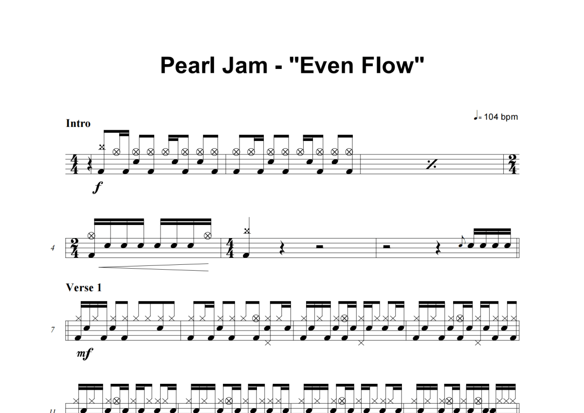 Pearl Jam《Even Flow》鼓谱 - 架子鼓谱