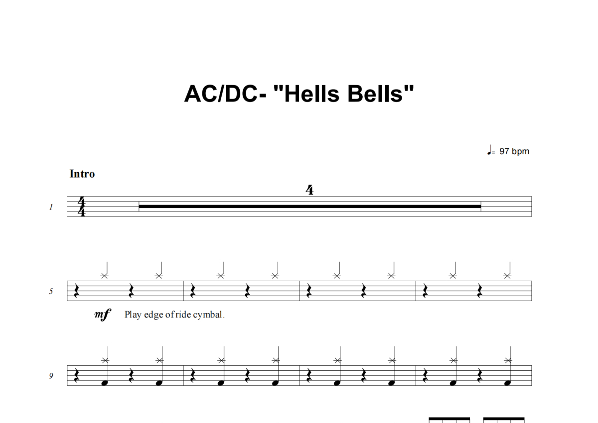 ACDC《hells bells》鼓谱 - 架子鼓谱