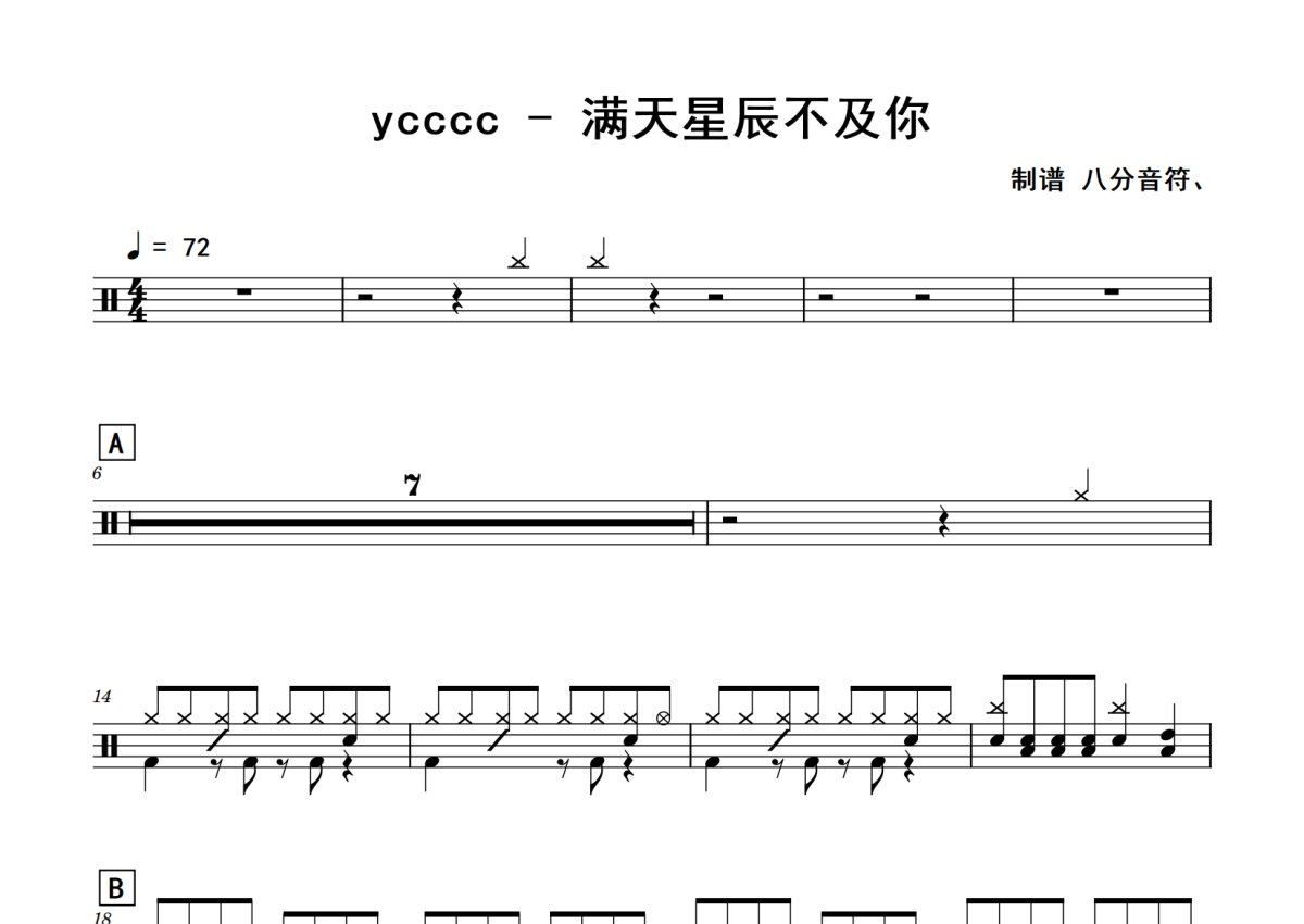 ycccc《满天星辰不及你》鼓谱 - 架子鼓谱