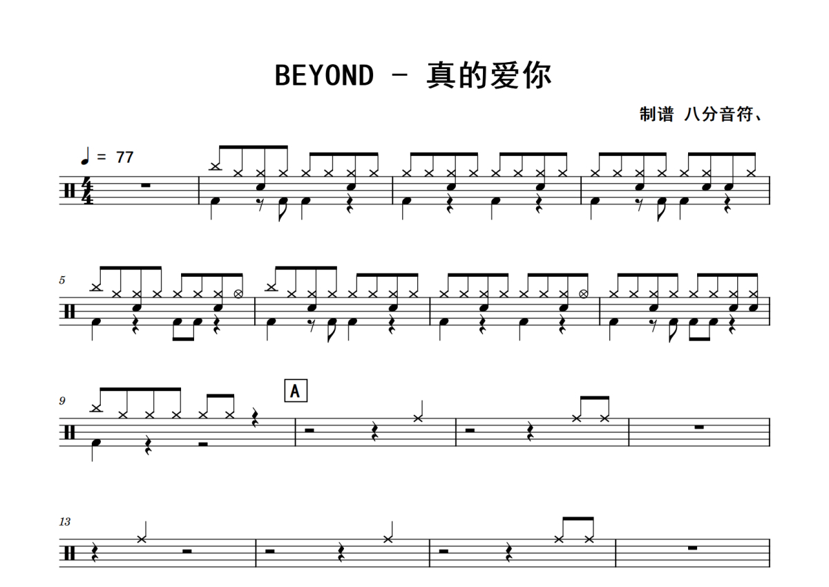 Beyond《真的爱你》鼓谱 - 架子鼓谱