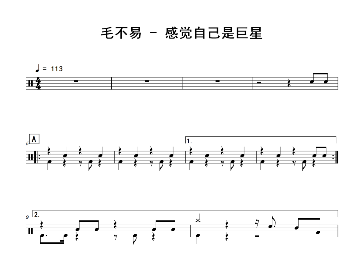 毛不易《感觉自己是巨星》鼓谱 - 架子鼓谱