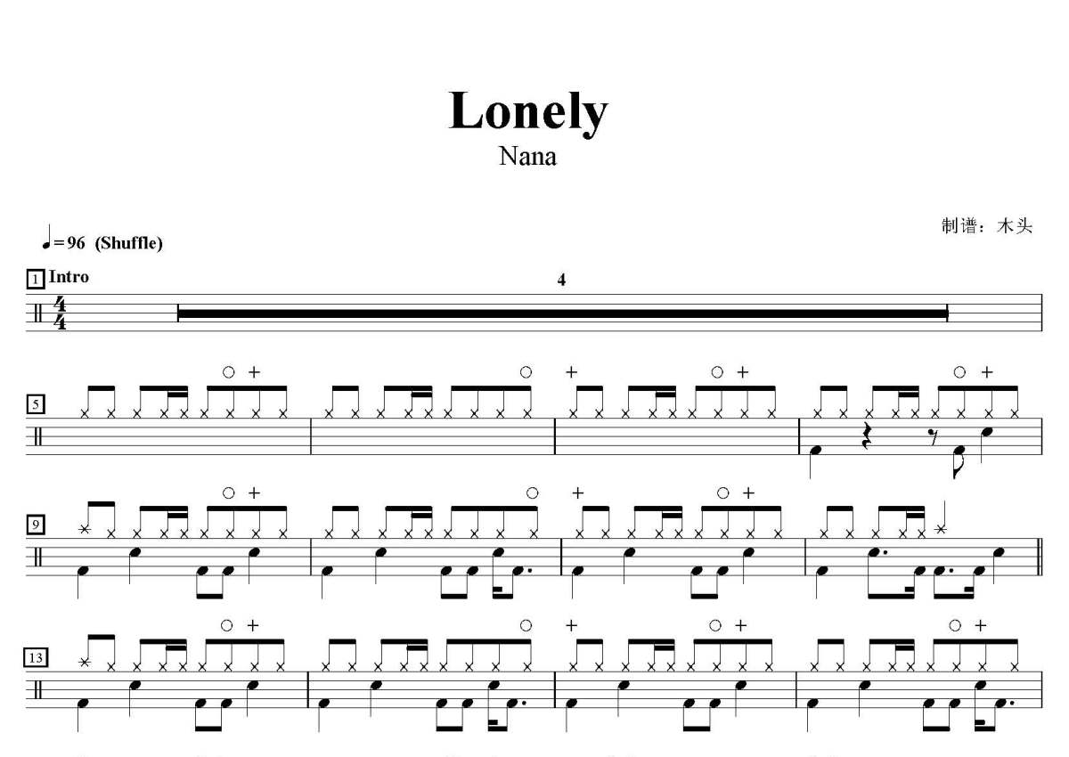 Nana《Lonely》鼓谱 - 架子鼓谱