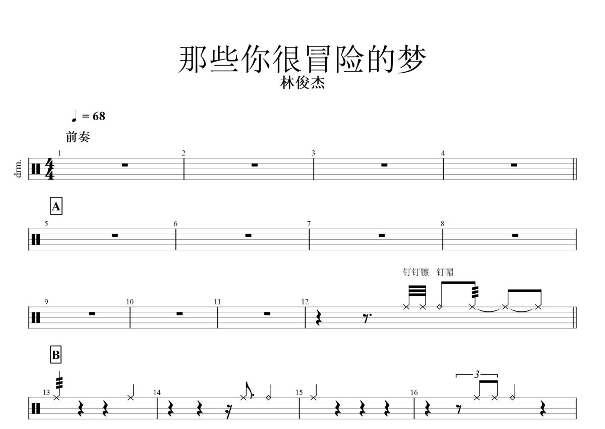 林俊杰《那些你很冒险的梦》鼓谱 - 架子鼓谱