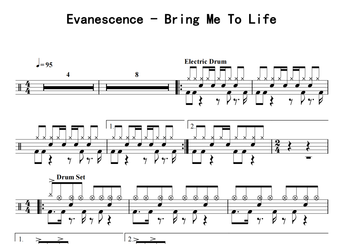 Evanescence《Bring Me To Life》鼓谱 - 架子鼓谱