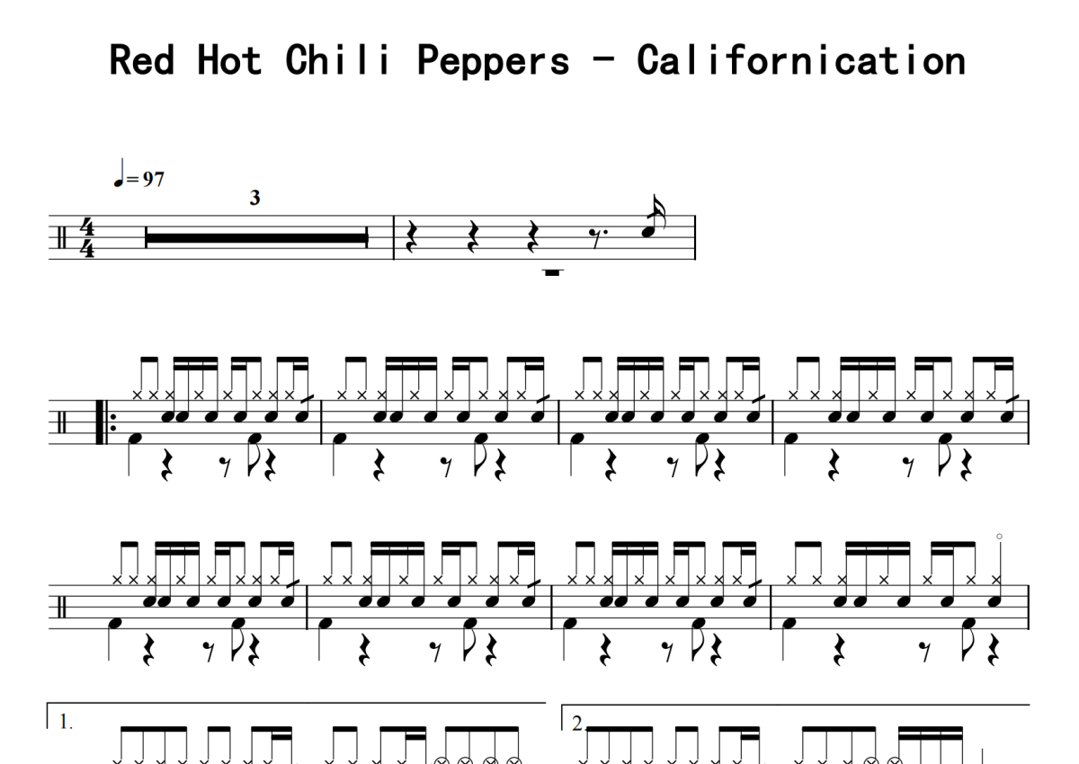 Red Hot Chili Peppers《Californication》鼓谱 - 架子鼓谱