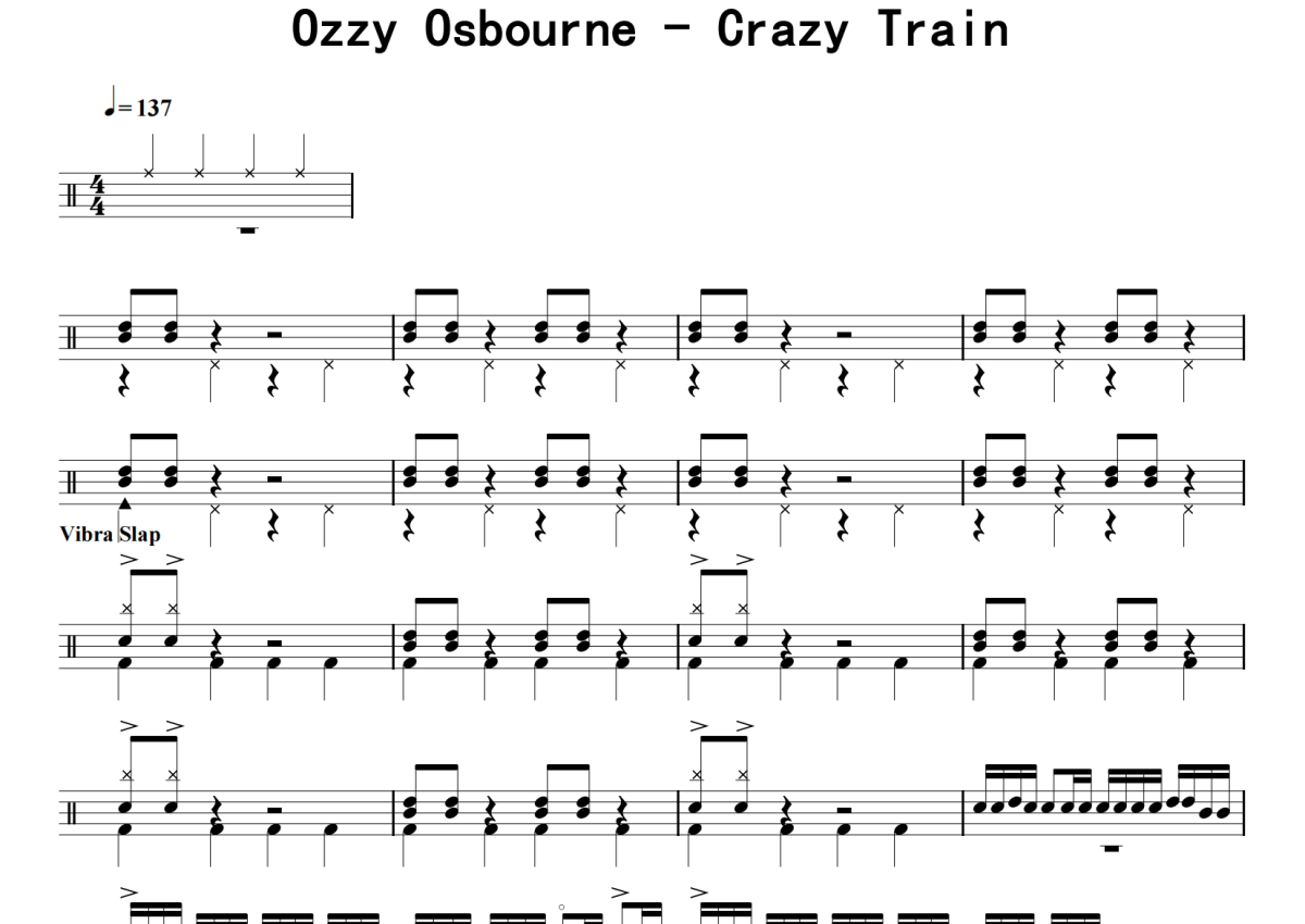 Ozzy Osbourne《Crazy Train》鼓谱 - 架子鼓谱