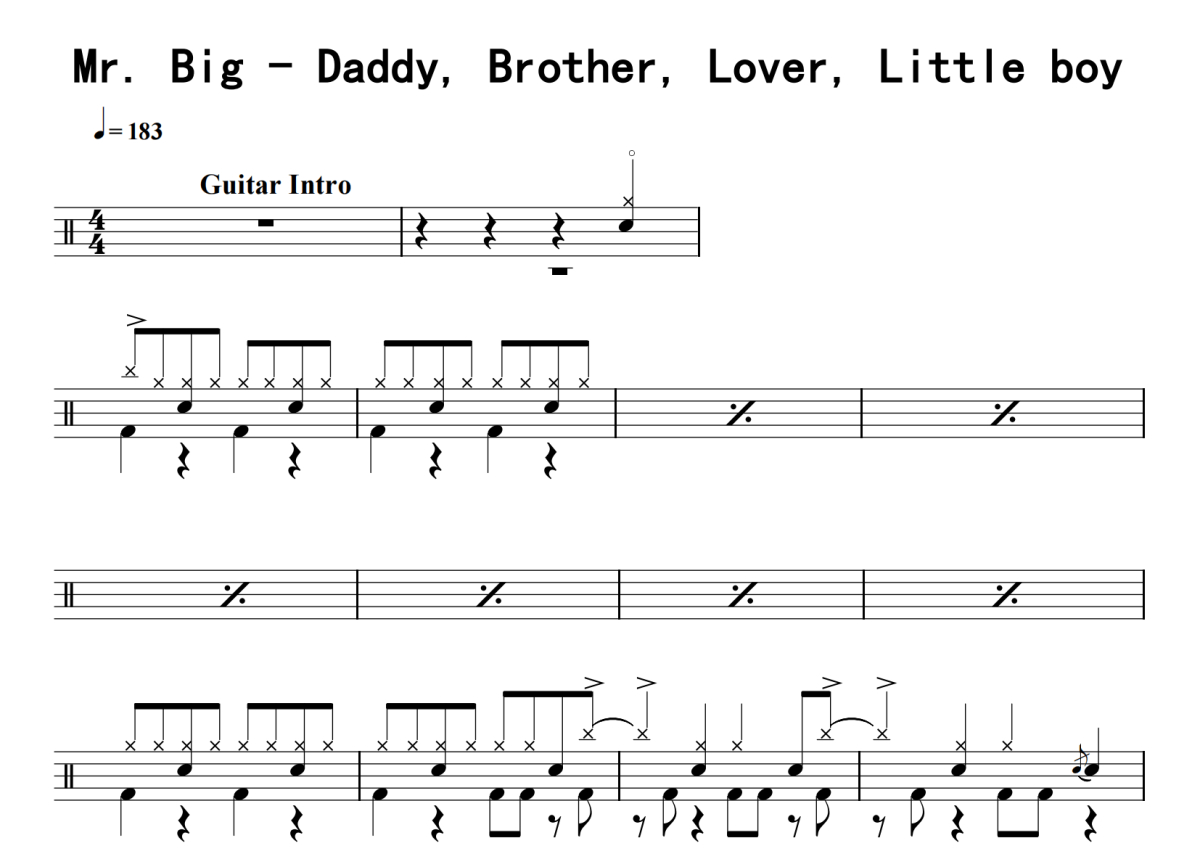 Mr. Big《Daddy, Brother, Lover, Little boy》鼓谱 - 架子鼓谱