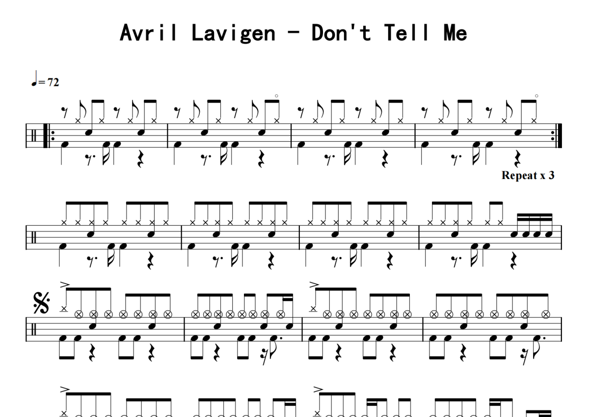 Avril Lavigen《Don't Tell Me》鼓谱 - 架子鼓谱