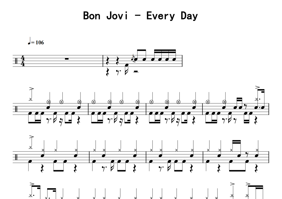 Bon Jovi《Every Day》鼓谱 - 架子鼓谱
