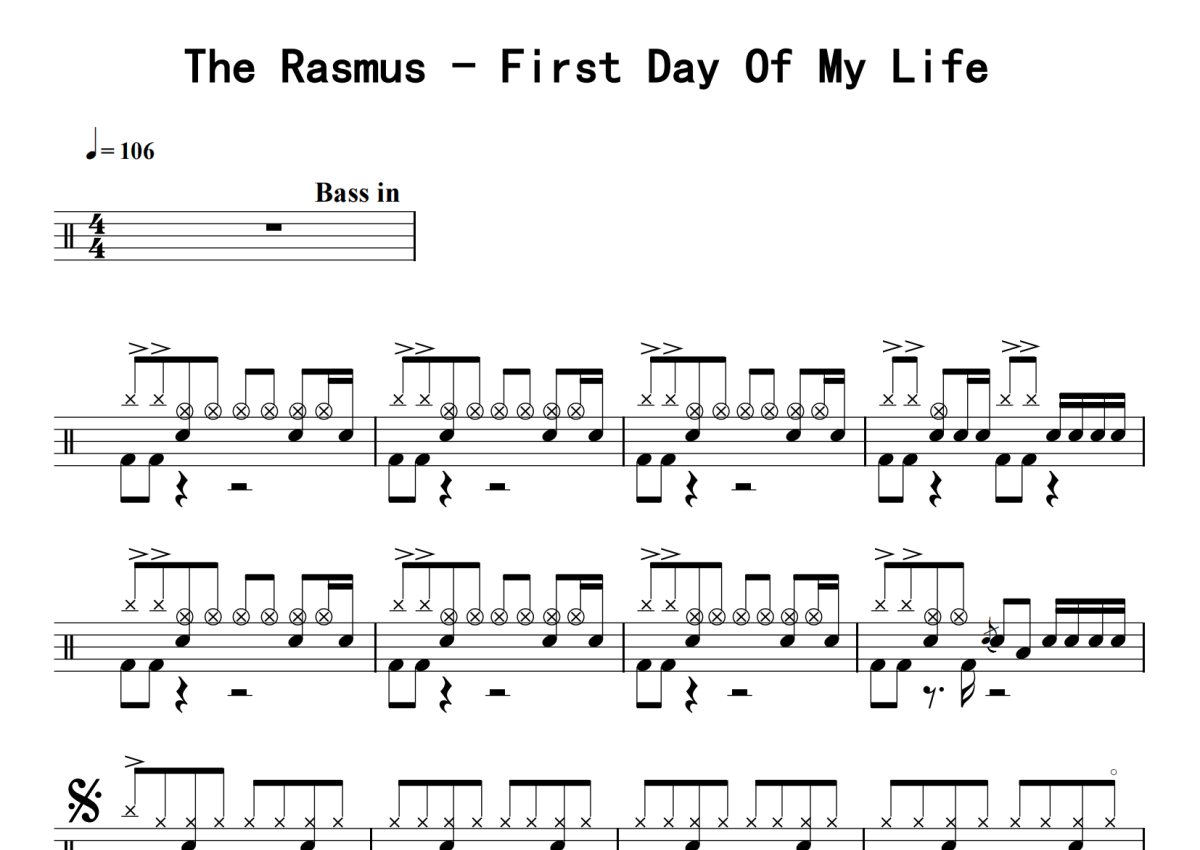 The Rasmus《First Day Of My Life》鼓谱 - 架子鼓谱