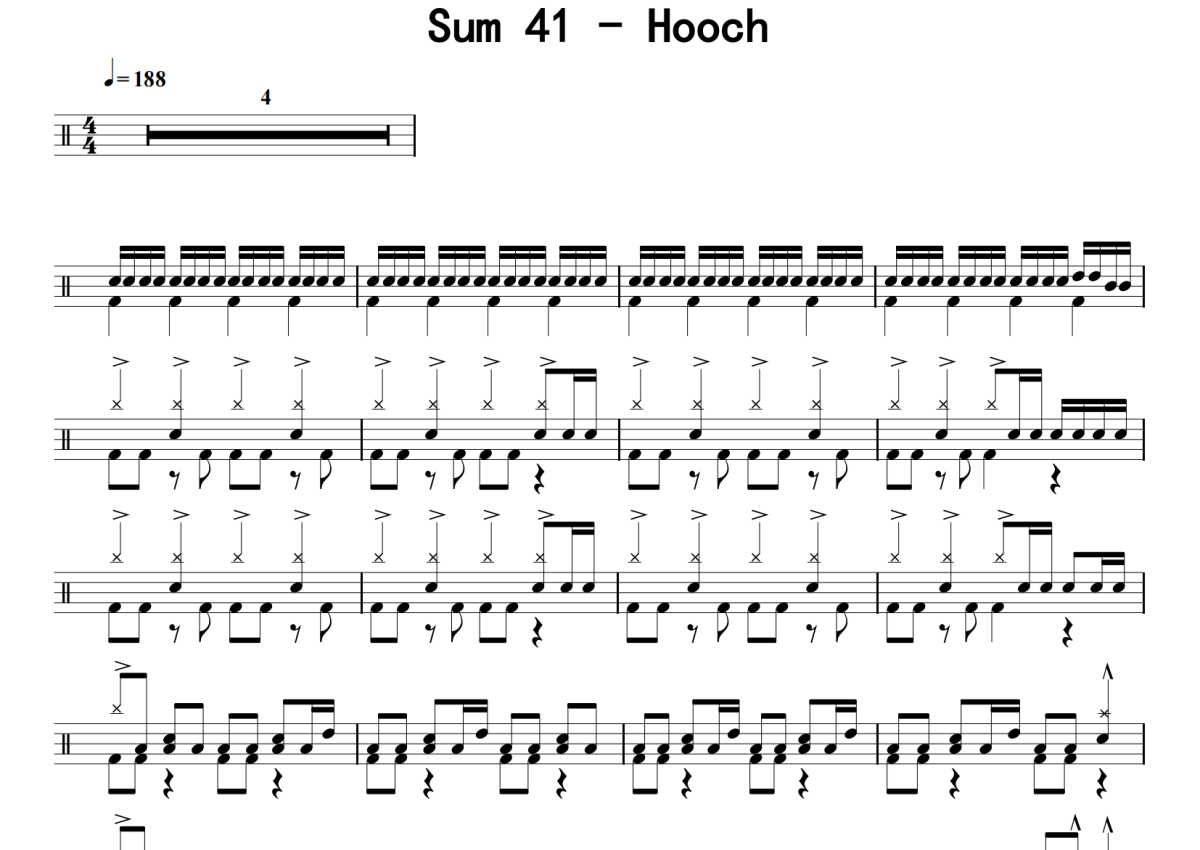 Sum 41《Hooch》鼓谱 - 架子鼓谱