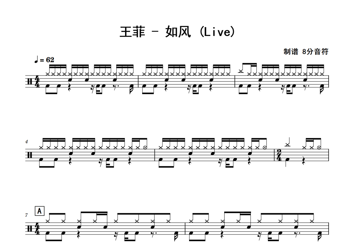王菲《如风》鼓谱 - 架子鼓谱 - Live