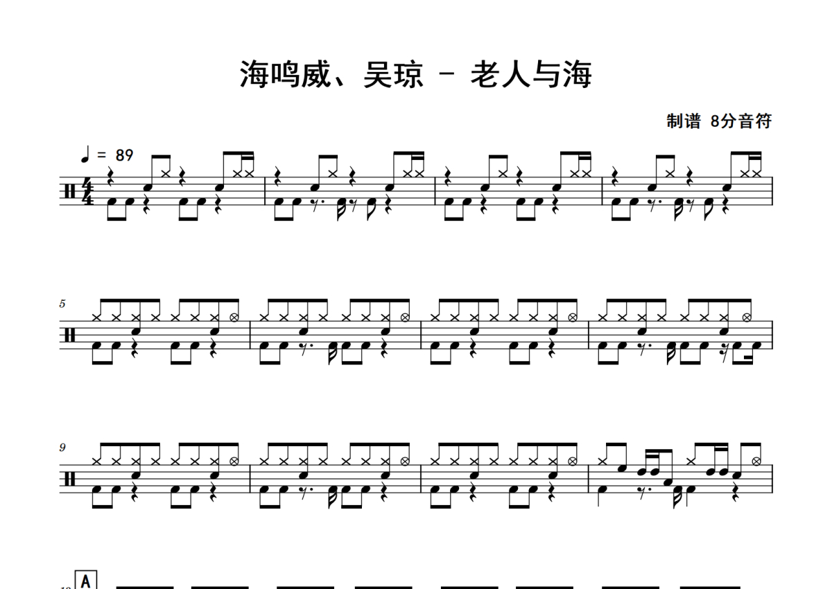 海鸣威、吴琼《老人与海》鼓谱 - 架子鼓谱