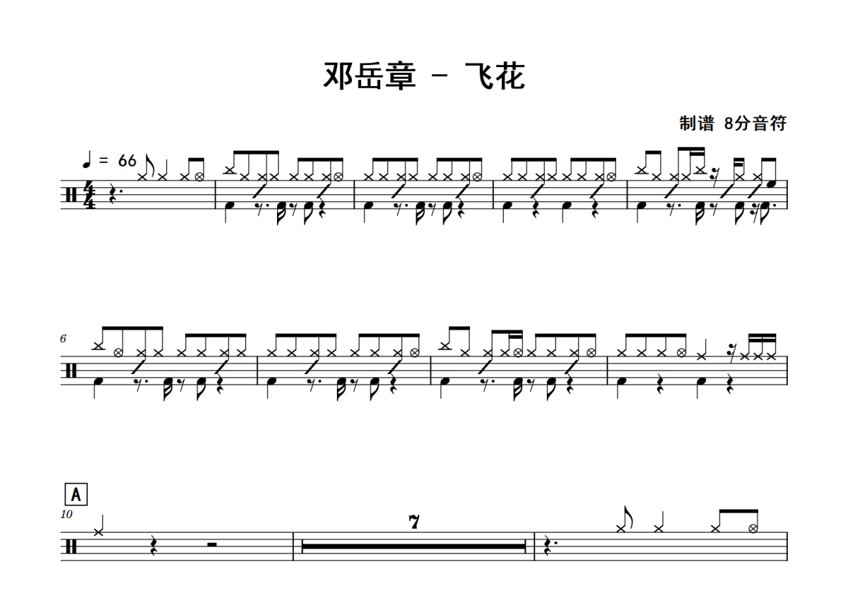 邓岳章《飞花》鼓谱 - 架子鼓谱