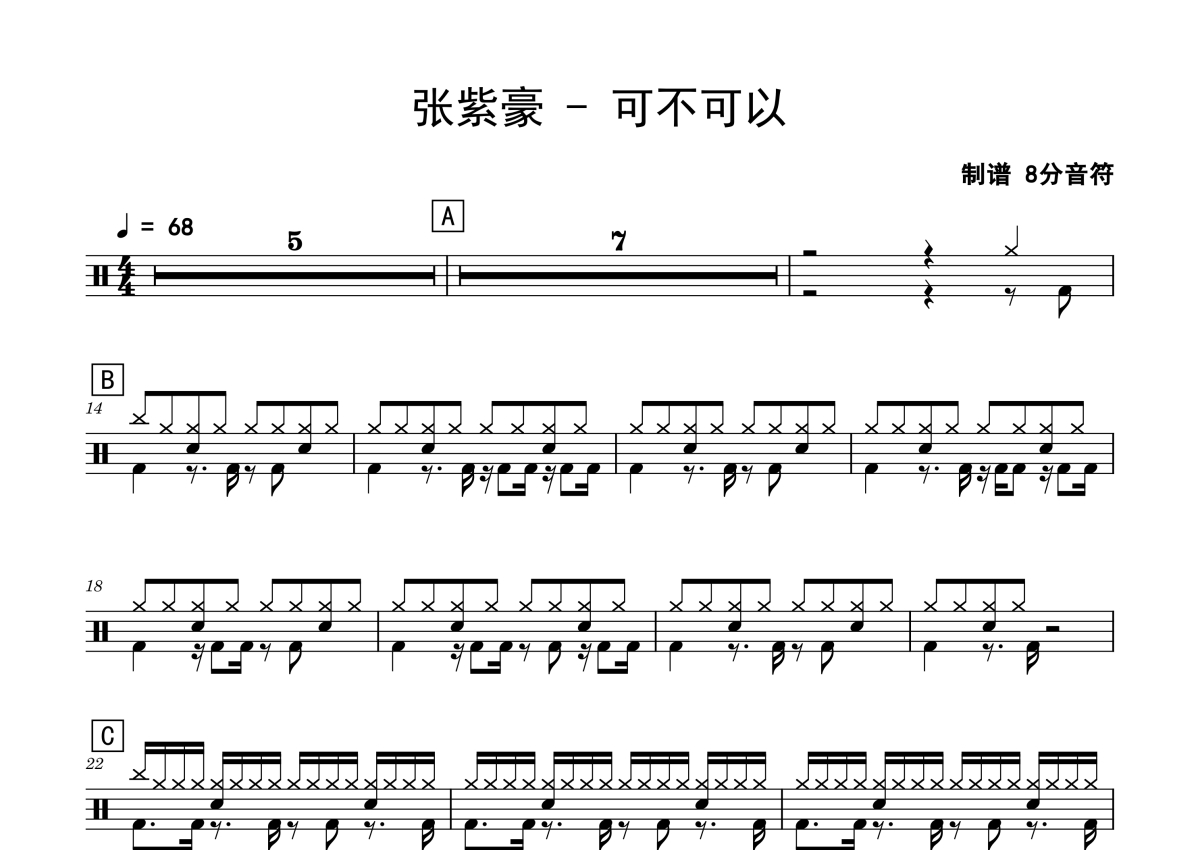 张紫豪《可不可以》鼓谱 - 架子鼓谱