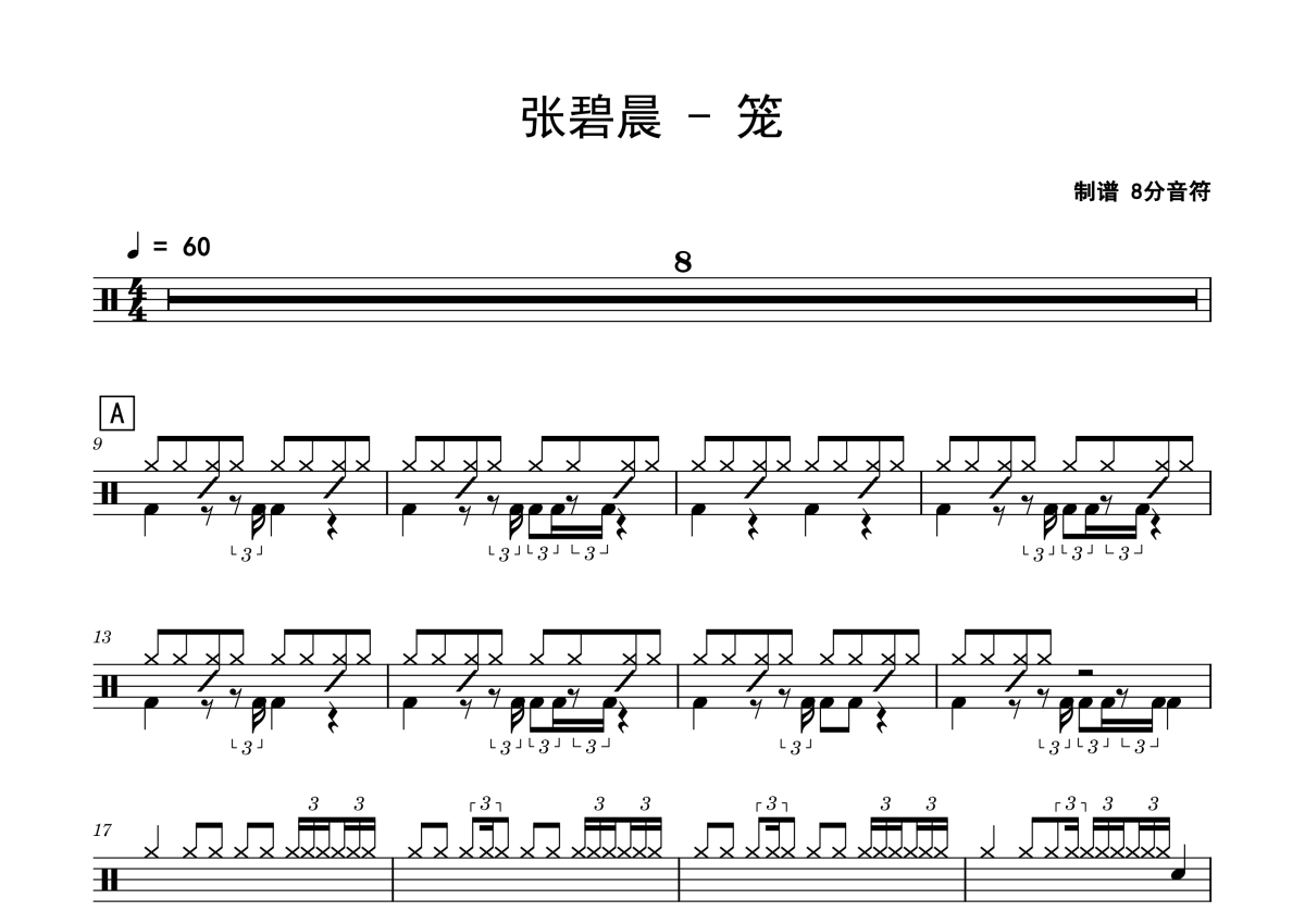 张碧晨《笼》鼓谱 - 架子鼓谱