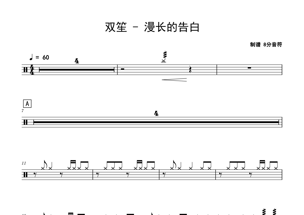 双笙《漫长的告白》鼓谱 - 架子鼓谱