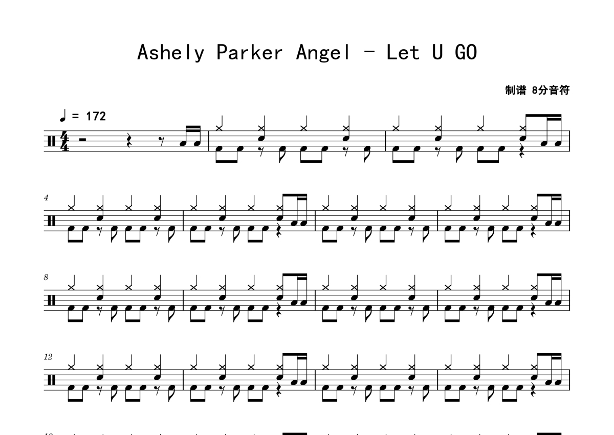 Ashely Parker Angel《Let U GO》鼓谱 - 架子鼓谱