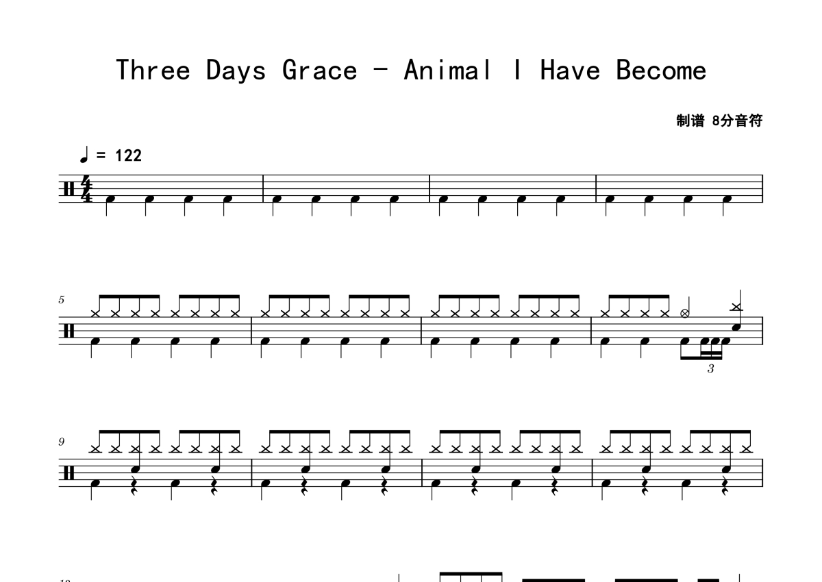Three Days Grace《Animal I Have Become》鼓谱 - 架子鼓谱