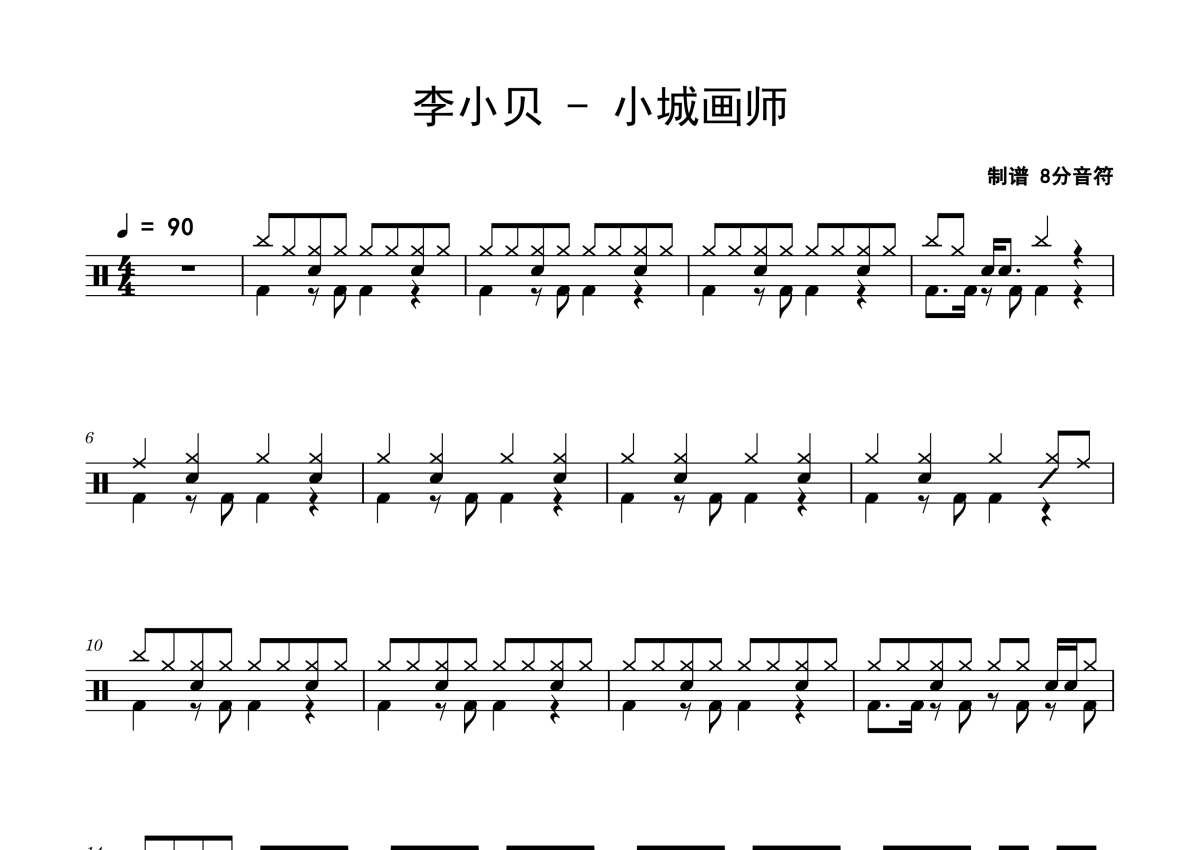 李小贝《小城画师》鼓谱 - 架子鼓谱